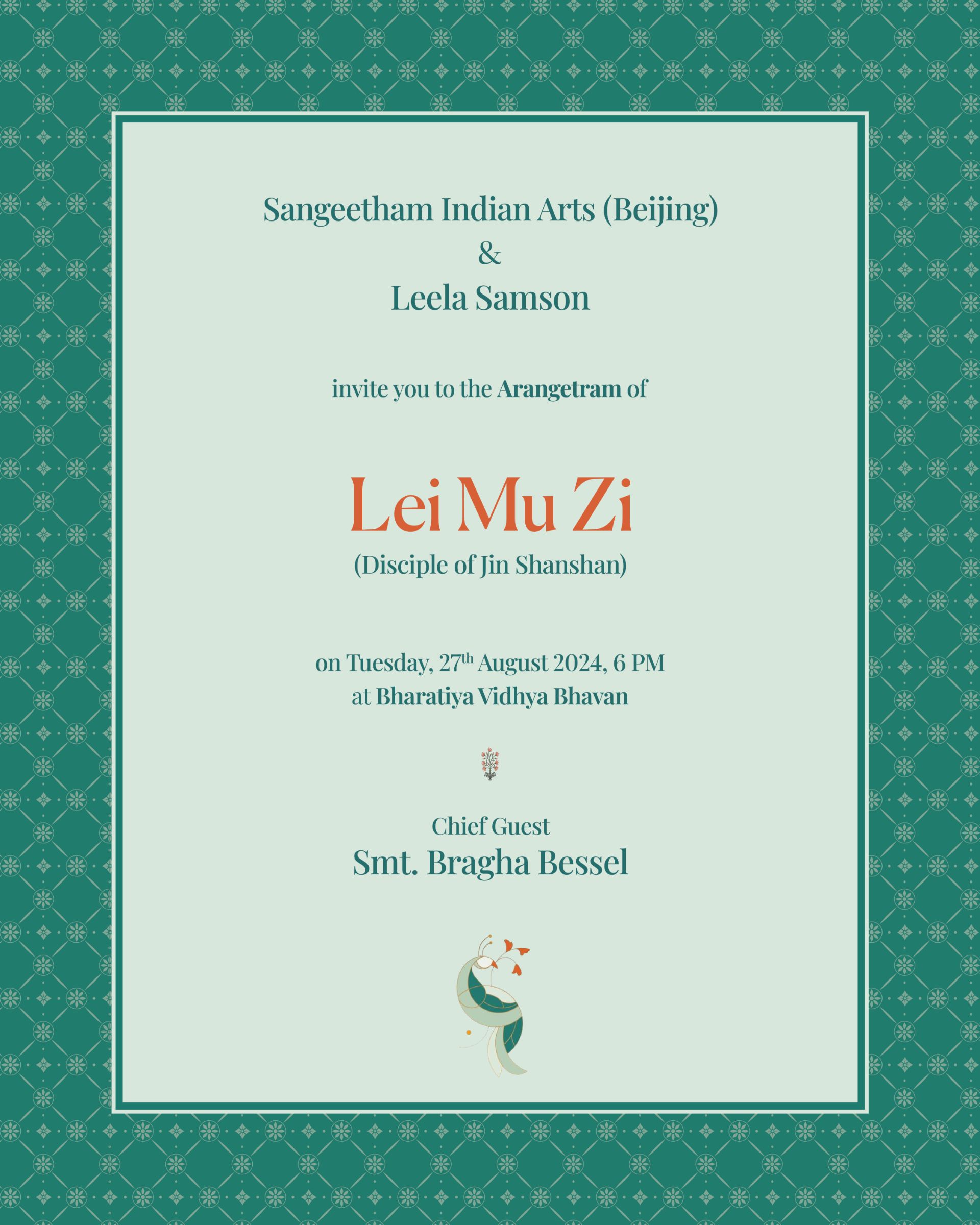 Lei Mu Zi, the student of Leela Samson's disciple Jin Shanshan from China, gracefully made her Bharatanatyam Arangetram at Bharatiya Vidhya Bhavan, Chennai.