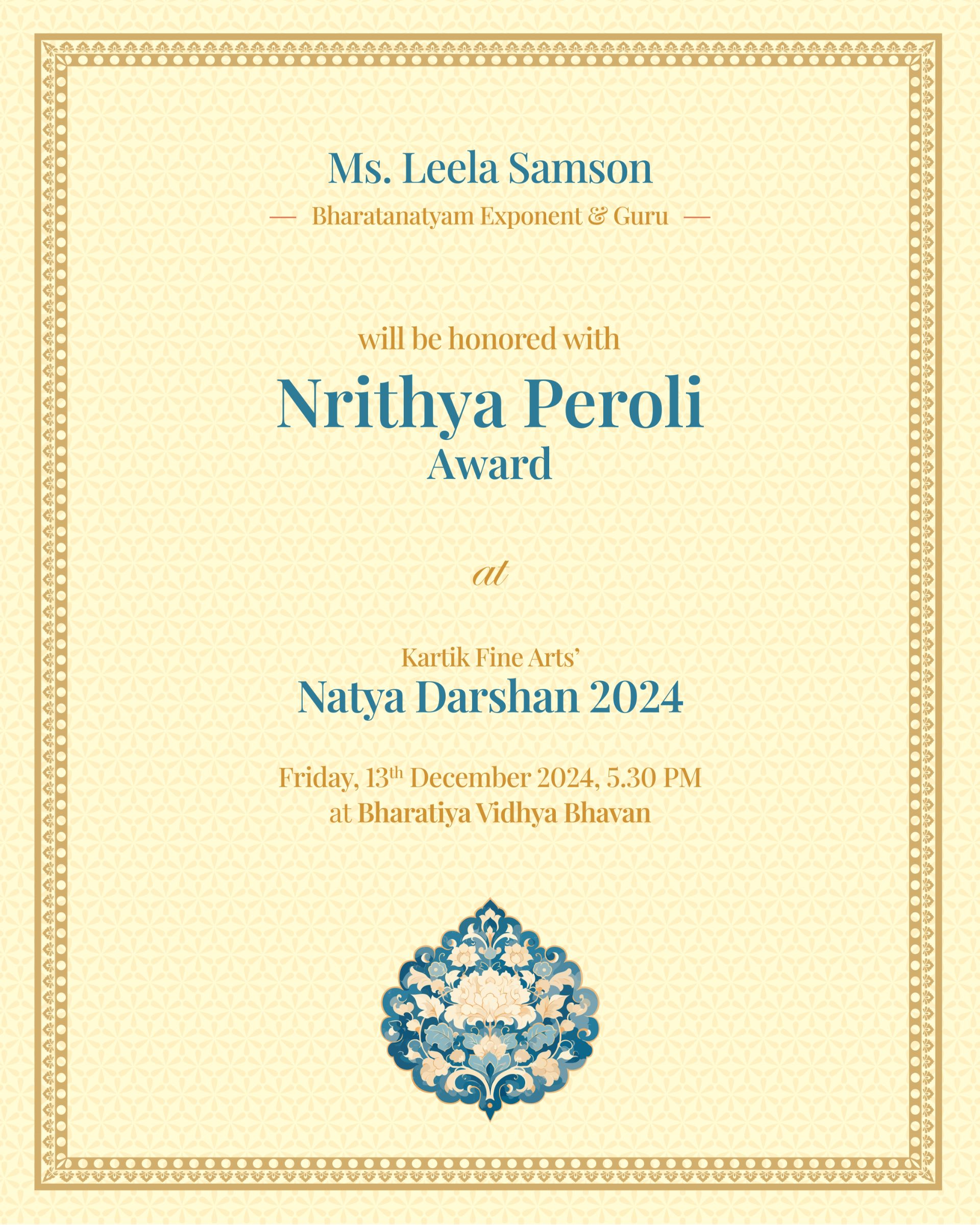 Glad sharing that the founder of Spanda Ms. Leela Samson has been conferred with the award Nrithya Peroli at Natya Darshan 2024 hosted by Kartik Fine Arts.